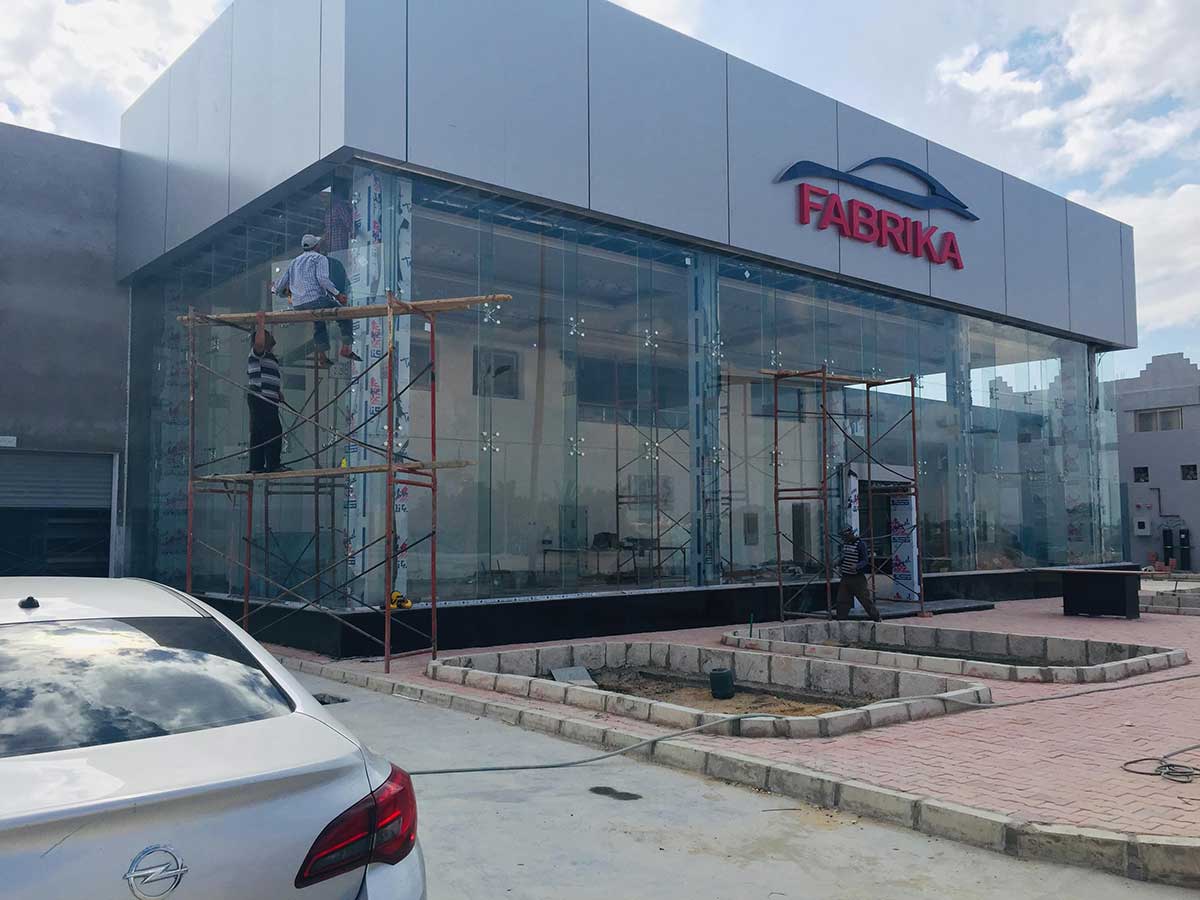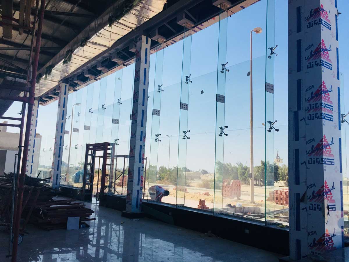 عمليه معرض غبور فرع المنيا زجاج 10 مم سيكوريت و واسلحه من الزجاج ال 20 مم +شيت تريبلكس 1.52مم بالاضافه الى سيستم اسبايدر جلاس استالس ستيل عيار 304 وجميع اكسسوار المطلوب فى المشروع اجمالى كميه المشروع 785 متر مربع بالاضافه الى اربع ماكينات فوتوسيل سوسرى الصنع
