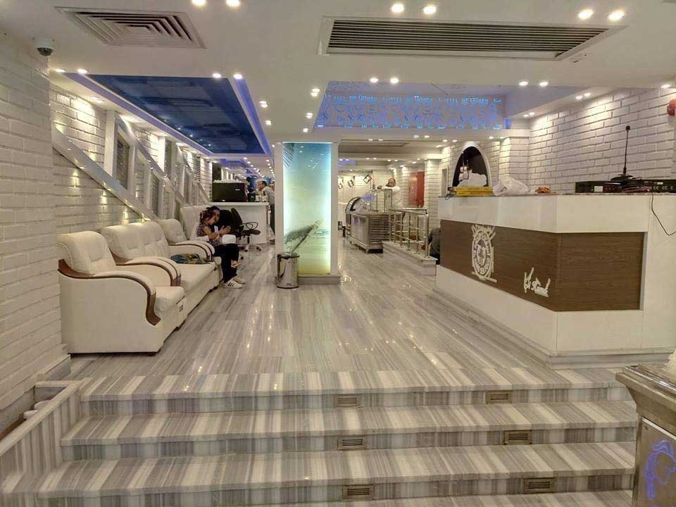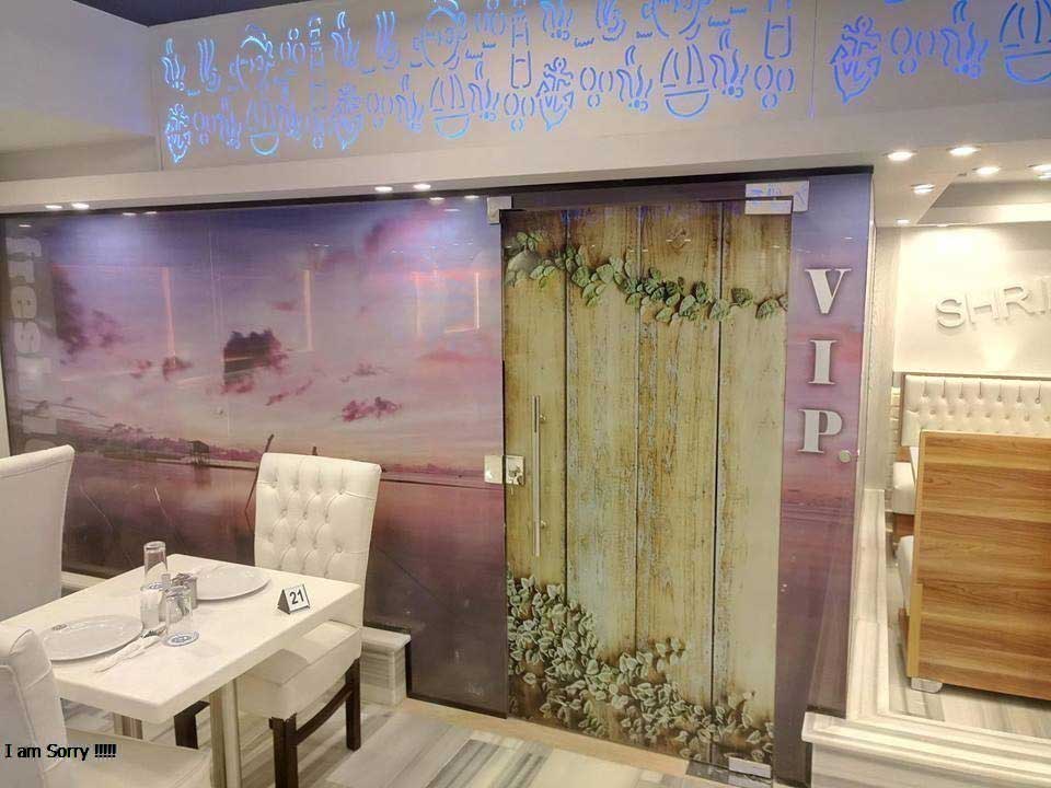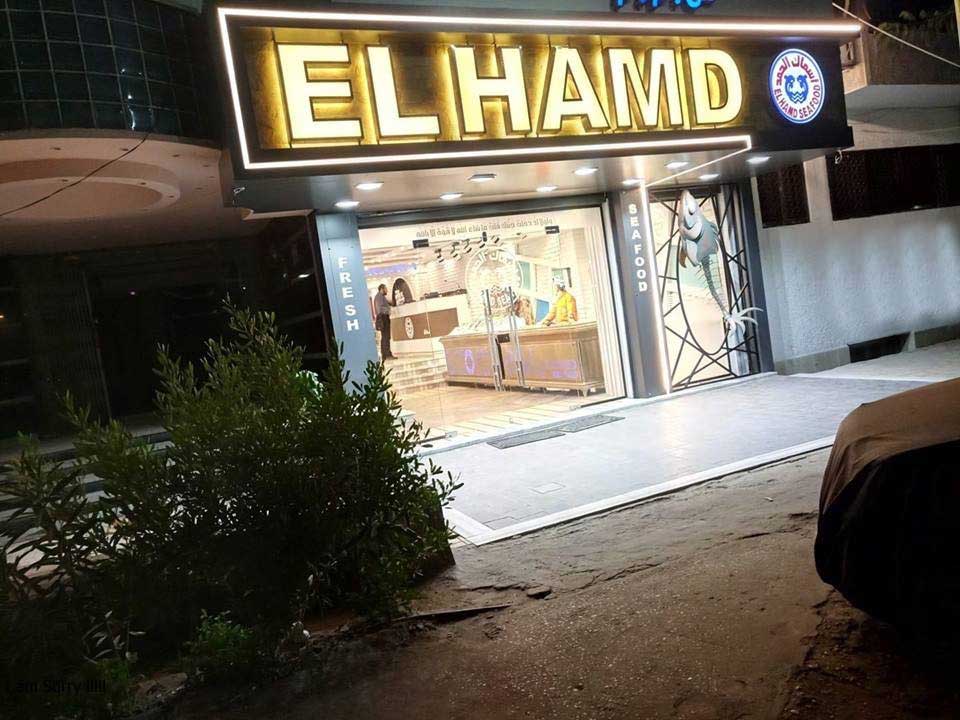 احد فروع مطاعم اسماك الحمد .مستخدم فيها تكنولوجا الطباعه السيراميك و الالوان الريزن مضيئه بالمبات الليد في الاعمده واجزاء من الاسقف . بالاضافه الى وضع مجموعه من شراح الزجاج للاسقف بدرجه زاويه 22.5 لاضافه تأثير مختلف واحساس بالفخامه
